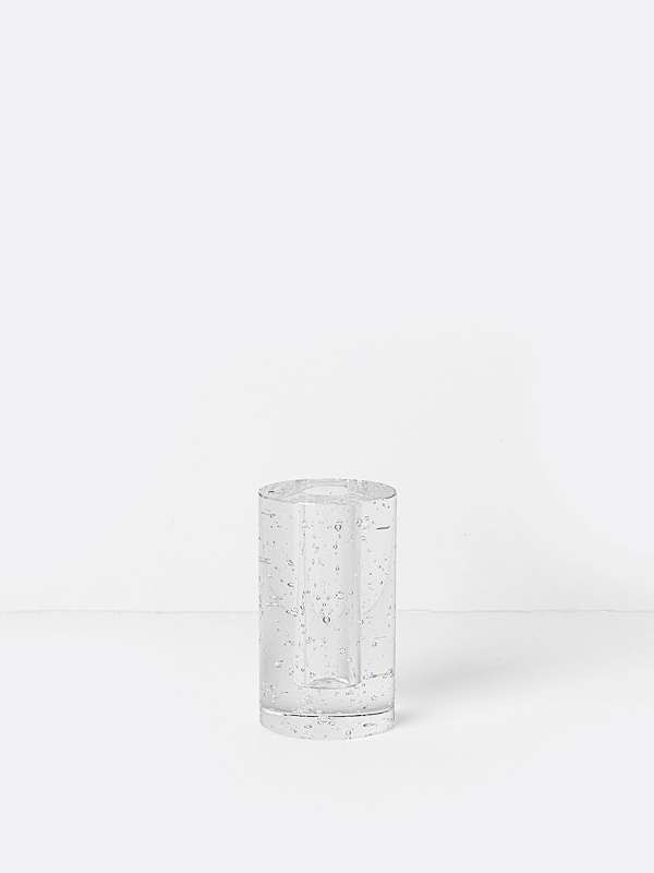 Indiferent dacă utilizați acest lucru ca vază sau suport de lumânare, Obiectele din sticlă de Bubble creează iluzia de a rămâne în picioare. Făcut din sticlă solidă cu bule de aer rotunde și precise, obiectele de sticlă de tip Bubble se disting printr-o expresie transparentă. Piesele sunt disponibile în patru forme geometrice diferite.