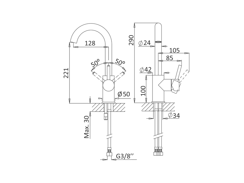 Baterie încastrată lavoar ADAMASTOR3 23cm