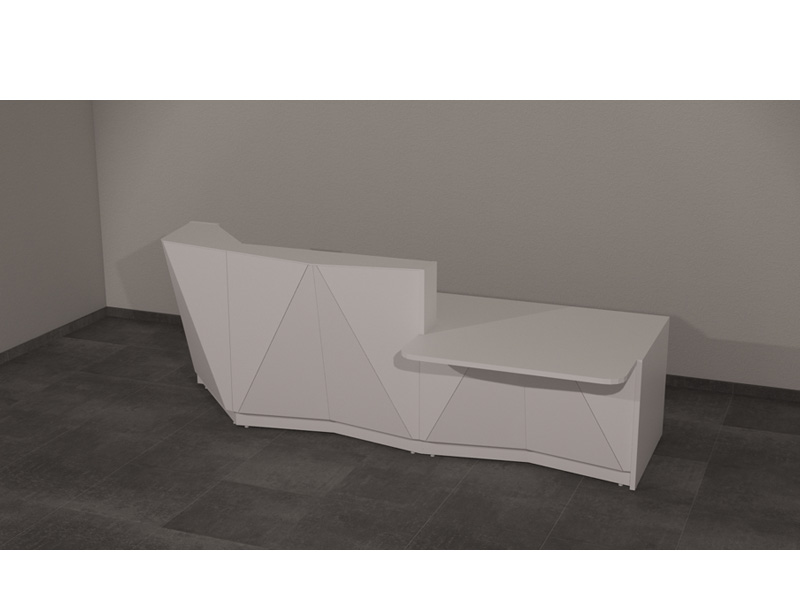 - panouri laterale care leagă componentele înalte de cele joase realizate din pal melaminat de 28 mm