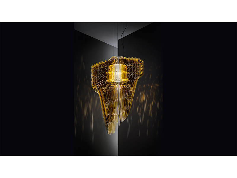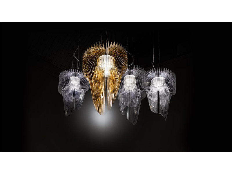 Adaugă un plus de lumină și eleganță în orice cameră din casa ta cu ajutorul candelabrului Aria Gold de la Archicraft. Cu dimensiuni de 70×115 cm, acest candelabru se potrivește perfect în orice living room, dining room sau hol decorat atât în stil clasic, cât și modern. Cele 50 de coli au o formă unică, fiind orientate în jurul LED-ului care difuză lumina, creând astfel un model tridimensional ce radiază în jurul sursei. Cu o siluetă armonioasă, dar totuși asimetrică, bazată pe echilibru și alternanță. Designul candelabrului Aria Gold a fost creat de către Zaha Hadid și este format din policarbonat placat cu pulbere de aur. Cu un aspect impunător și luxos, candelabrul Aria va deveni rapid piesa de rezistență din orice încăpere.