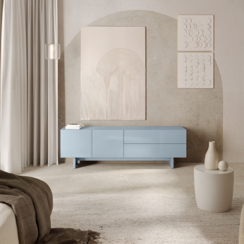 Home MOBILIER Dulapuri și depozitare Console TV Consolă TV GLIM 160×38 albastru fumuriu lucios