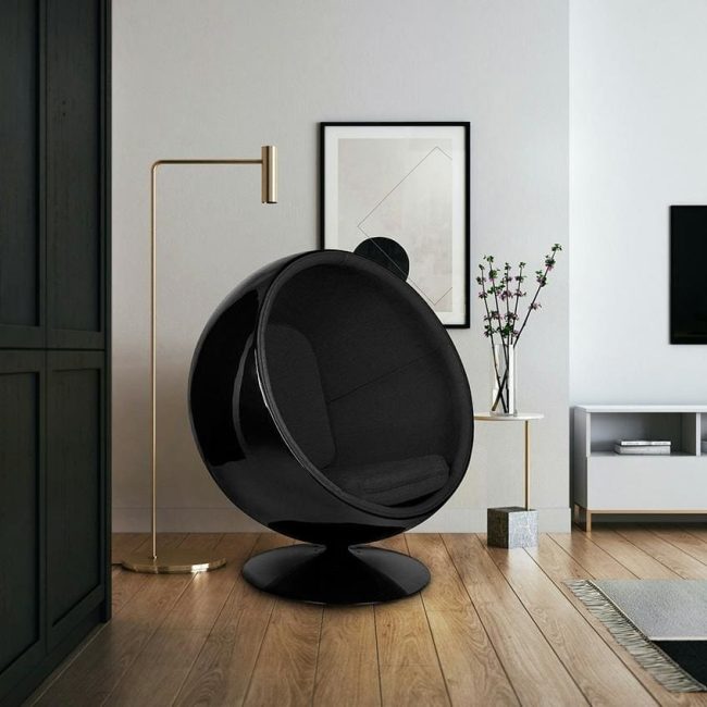 Întregul fotoliu și suportul pentru picioare sunt tapițate cu piele ecologică de culoare neagră.