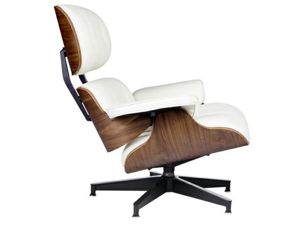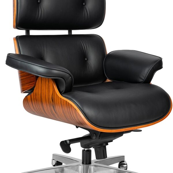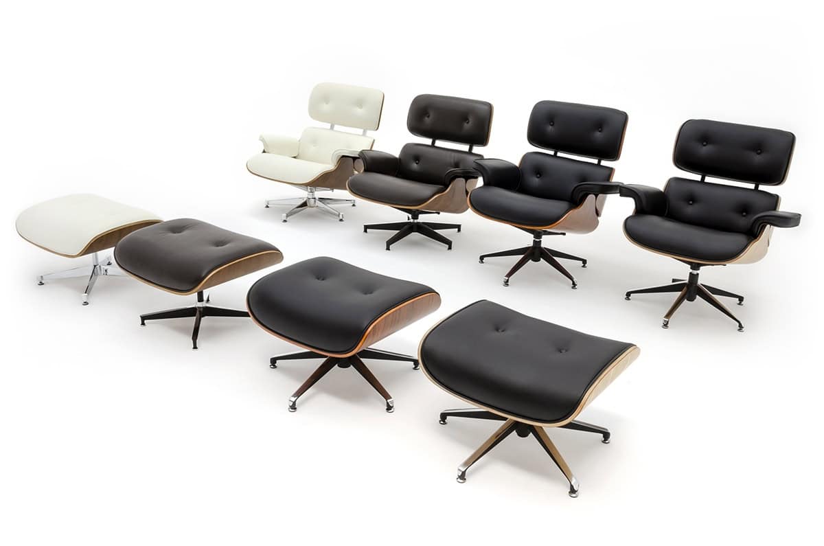 Fotoliul Charles Eeames LOUNGE de la MODESTO DESIGN, negru cu suport pentru picioare din lemn de nuc.