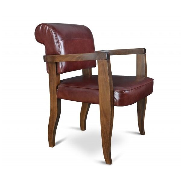 Corpul fotoliului este realizat din lemn de nuc usor curbat termic.