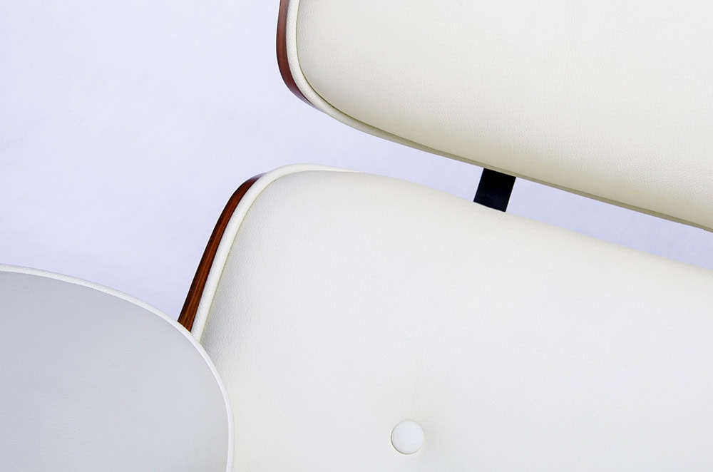 Fotoliu Charles Eames LOUNGE alb cu lemn de nuc / trandafir/ frasin/ abanos.