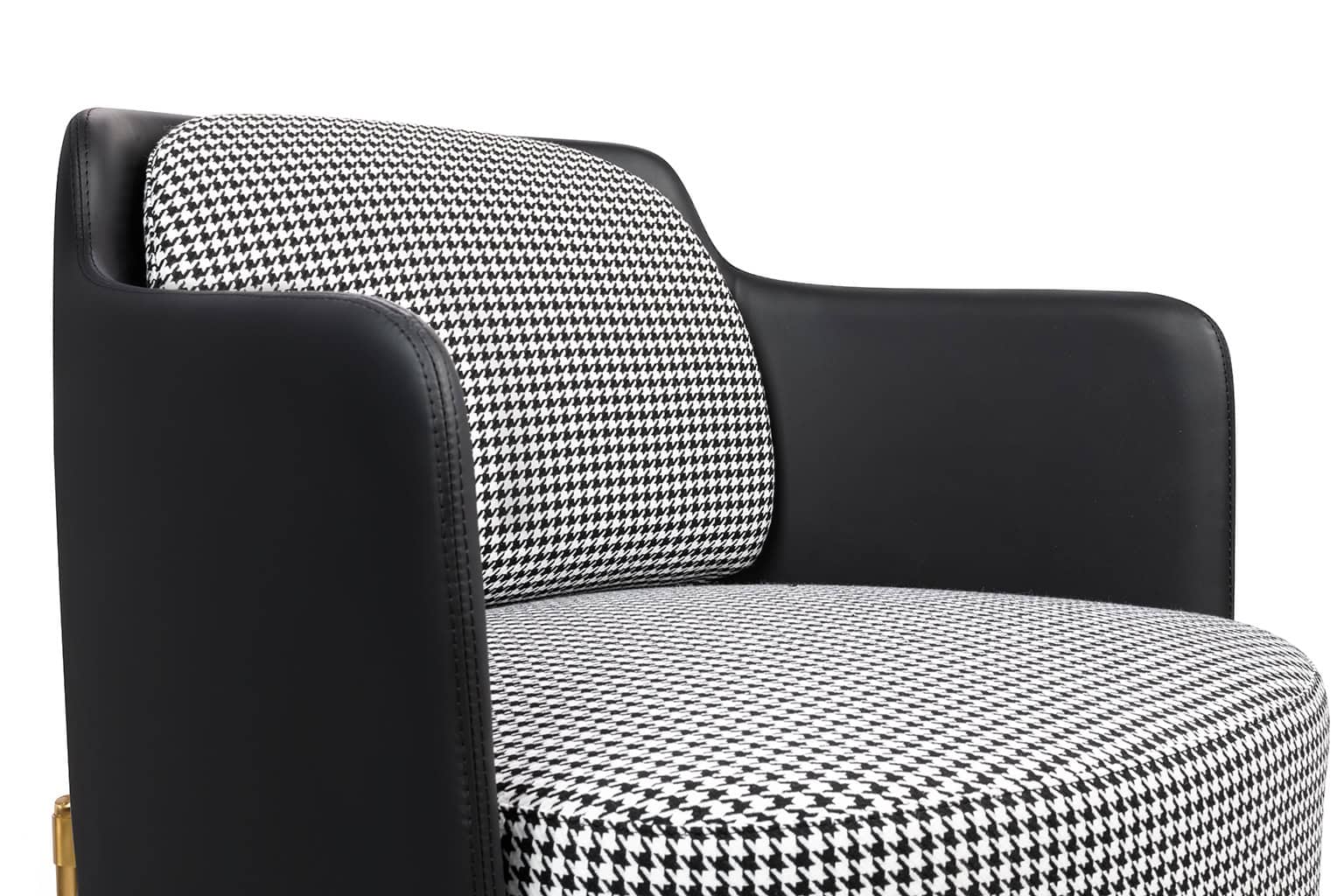 Baza metalică de culoare aurie/ neagră satinată subliniază caracterul modern al fotoliului.