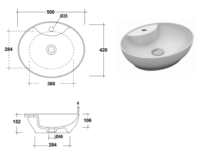 Lavoar model TREND Ovale Monoforo 50