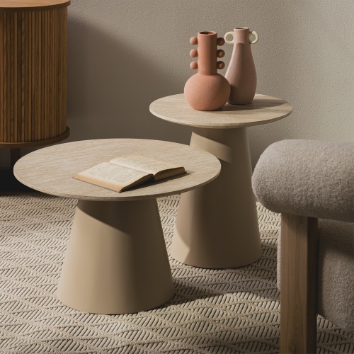 Adăugați o eleganță subtilă interiorului dvs. cu măsuța de cafea Sakala l. Această piesă unică combină designul modern cu aspectul travertinului, creând un accent elegant care va completa perfect orice decor.