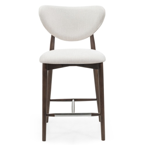 Scaunul de bar Domenico este o combinație armonioasă între designul modern și confort. Forma sa rotunjită și tapițeria bej îi conferă un aspect elegant, în timp ce șezutul moale oferă un confort excepțional. Picioarele din lemn de frasin, cu un finisaj elegant de nuc, îi sporesc eleganța. Perfect pentru orice sufragerie, combină funcționalitatea cu estetica.