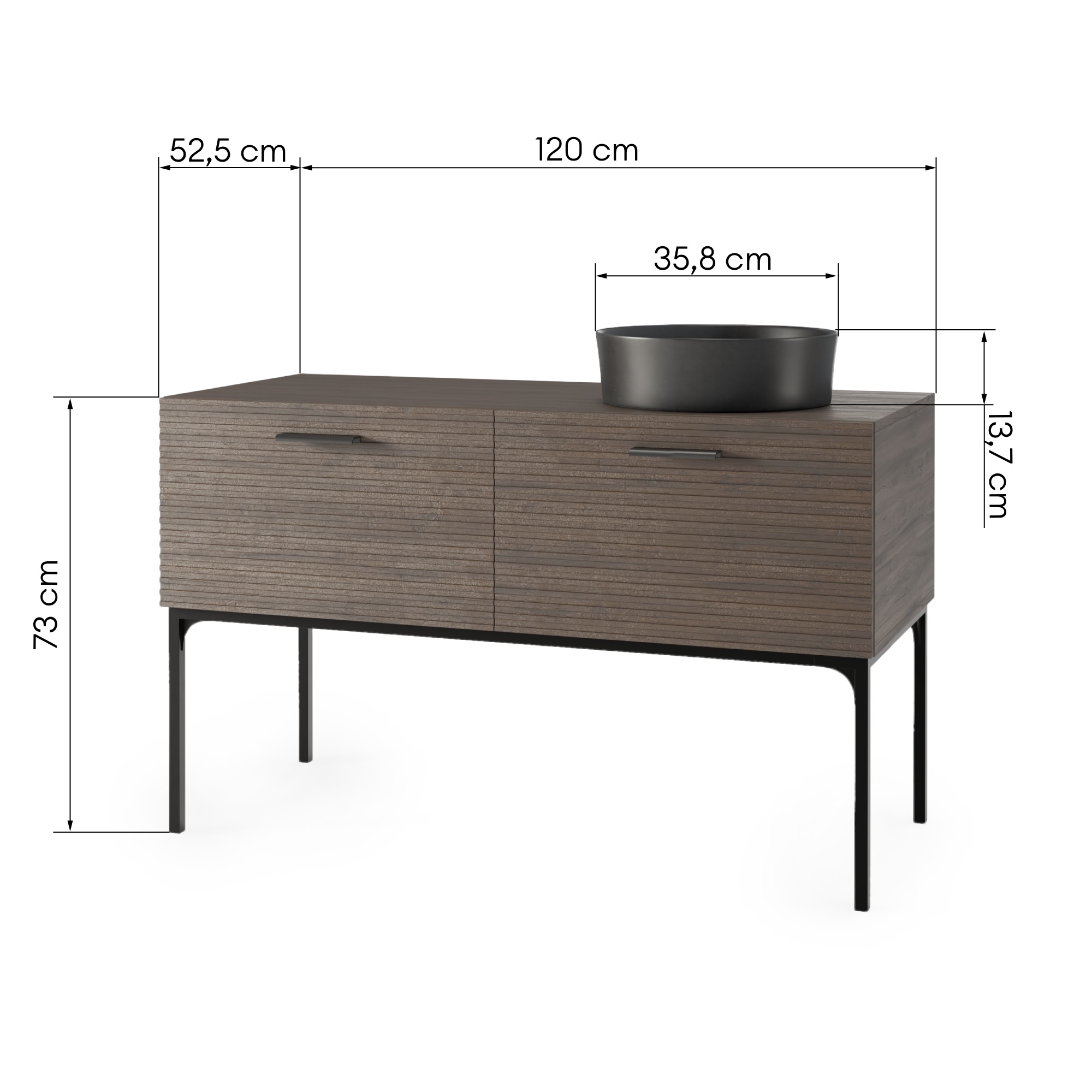 Dotat cu două sertare cu fețe riflate prevîzute cu sisteme de închidere silentioasă